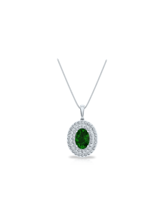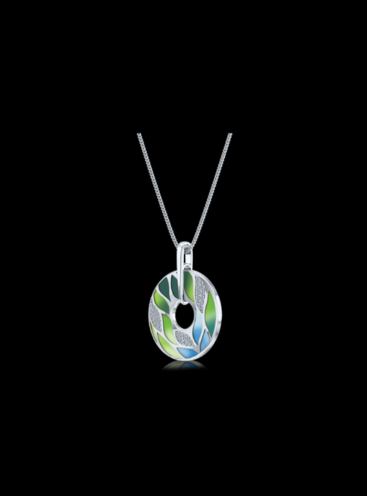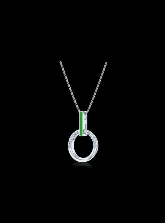 Diamond & Green Enamel Circle Pendant-0.10 Ct TW